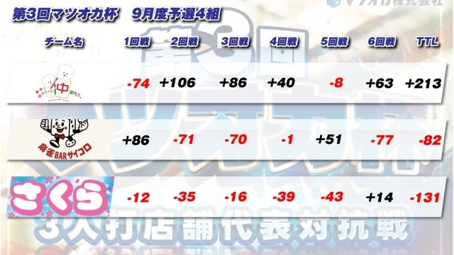 【三麻】第3回マツオカ杯 9月予選4組 勝ち上がり店舗 【マツオカ株式会社】