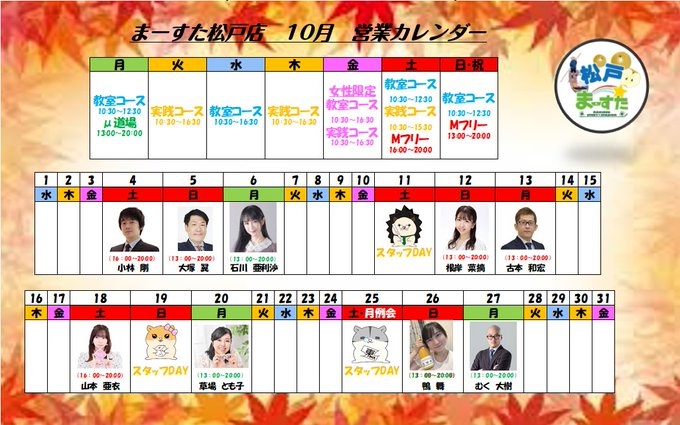 10月営業日のお知らせ