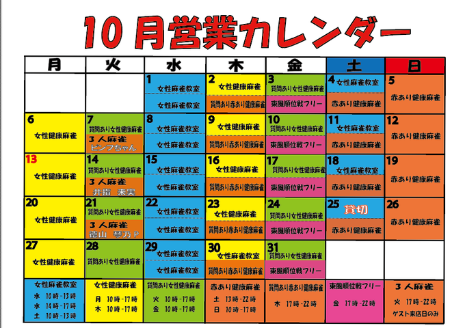 【10月営業カレンダー】