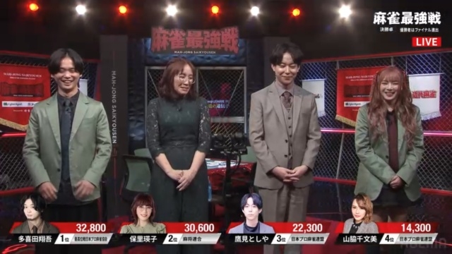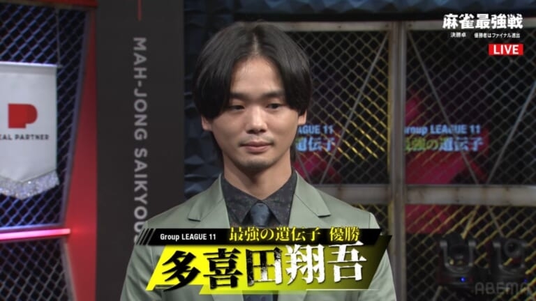 その模様はAbema麻雀チャンネルにて生配信され、予選・決勝ともに苦しい立ち上がりだった多喜田翔吾プロが、盛り返して優勝した。