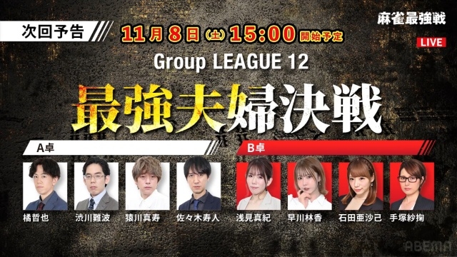次回の麻雀最強戦2025は11月8日(土)に行われる「最強夫婦決戦」。