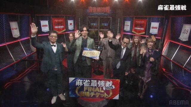 多喜田プロには麻雀最強戦2025ファイナルへの出場権、賞金10万円ならびにアース製薬商品の詰め合わせが贈られた。