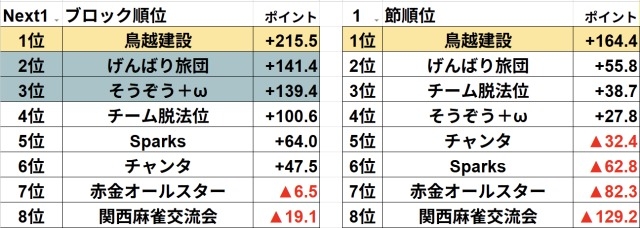 Next1ブロック第1節 終了しました