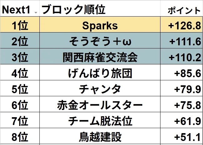 Next1ブロックは上位1チームが決勝戦へ!