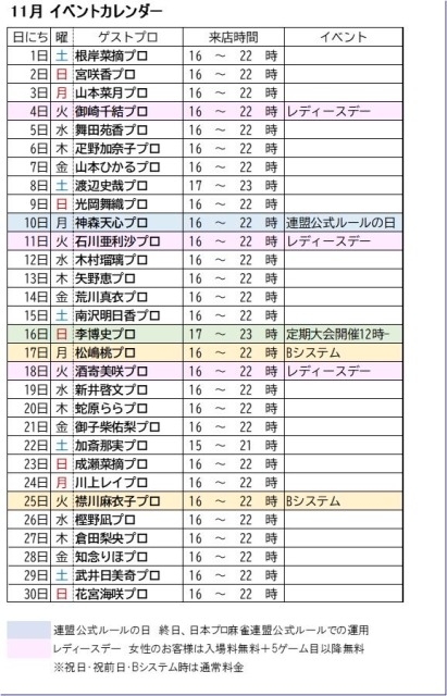 東京都品川区西五反田 [まぁ〜じゃんNext] 2025年11月のゲスト来店予定