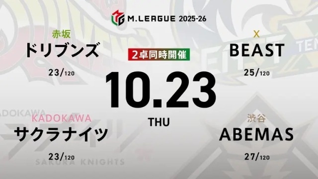 Mリーグ 2025-26シーズンは2025年10月に[「ABEMA 麻雀チャンネル」で開幕式&開幕戦からスタート予定です!