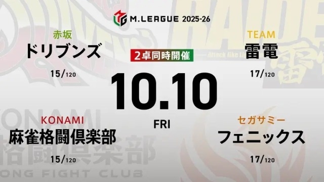 2025年10月10日(金)#Mリーグ#配信 ABEMA https://abema.tv/channels/mahjong/slots/AMfni56sWNmRdh より